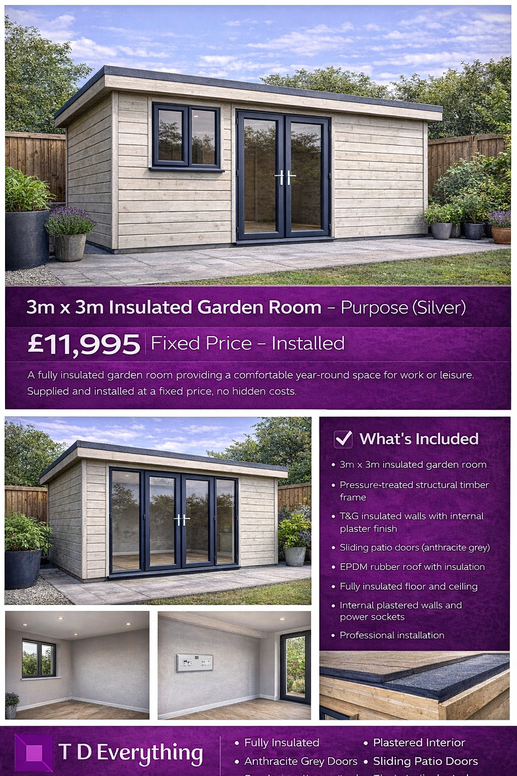 3m x 3m Insulated Garden Room – Purpose (Silver)