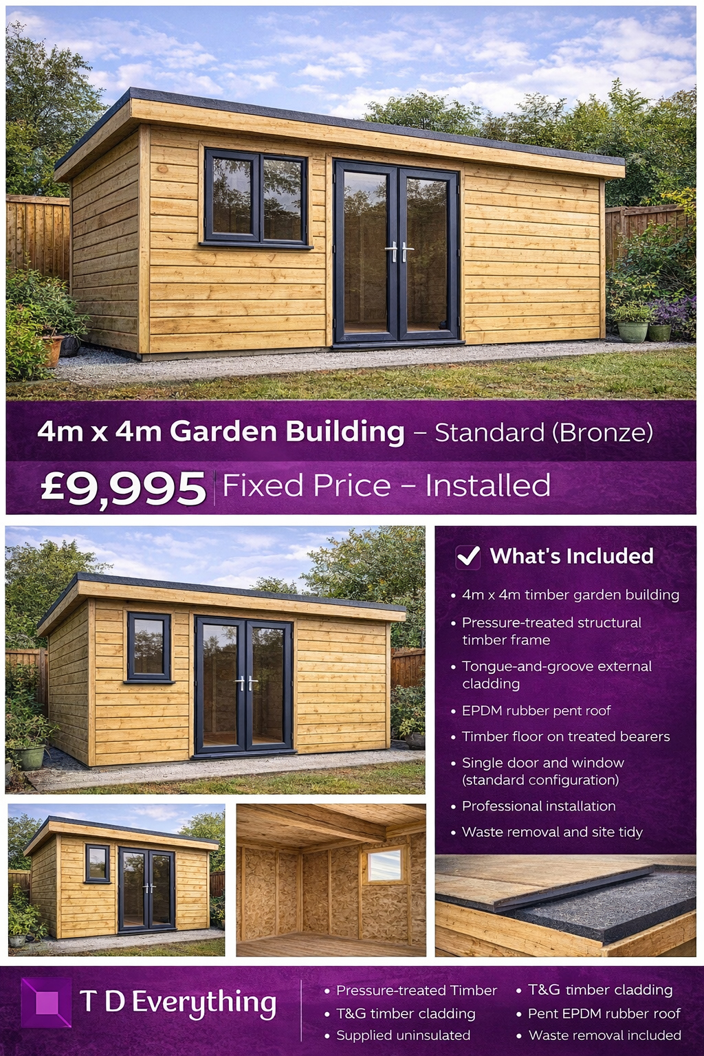 The 4m x 4m Standard Garden Building (Bronze) is our largest non-insulated garden building, designed for customers who need serious space without stepping into insulated or bespoke pricing.