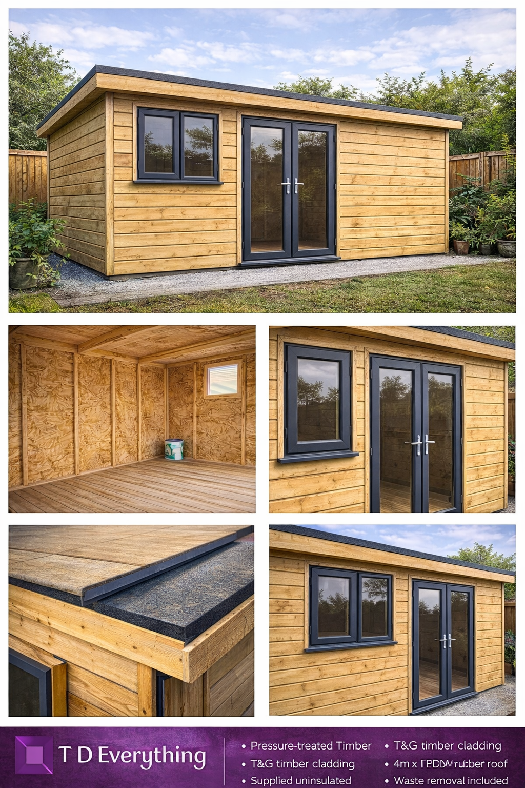 This is a standard, uninsulated building, making it perfect for practical outdoor use where internal finishing and year-round heating are not required. Installation and waste removal are included in the fixed price, giving you clarity from the start.